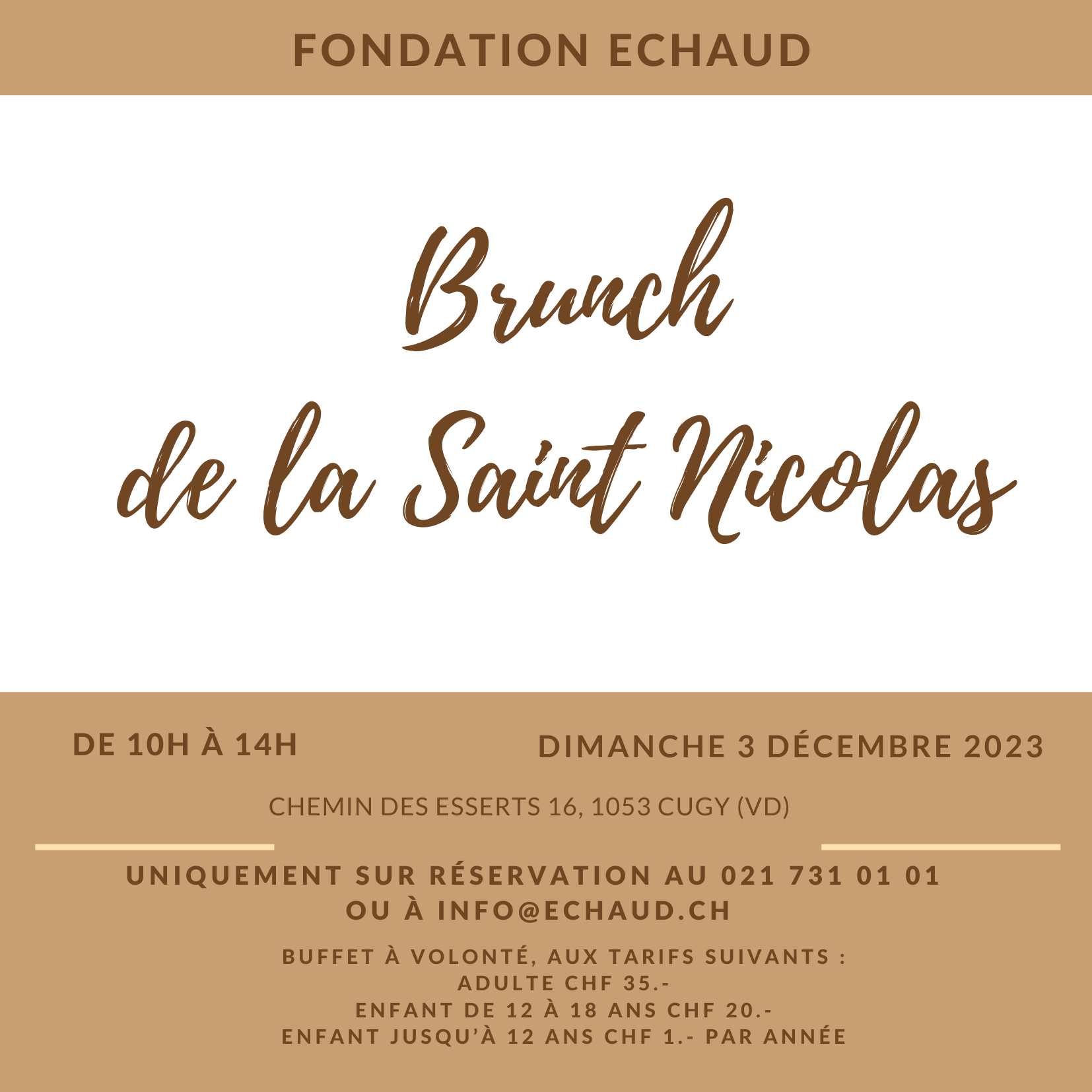 Le nombre de places est limité ; réservation préalable obligatoire par mail à l’adresse info@echaud.ch ou par téléphone auprès du secrétariat de la Fondation au 021 731 01 01.