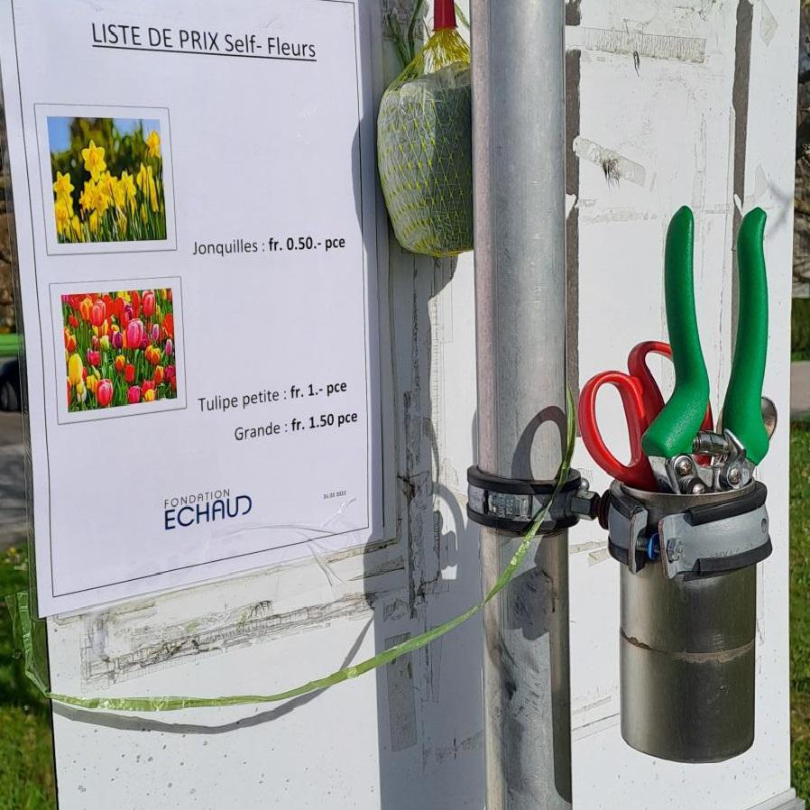Le self-service mis en place par l’équipe des ateliers de la Fondation Echaud voit ses premières ouvertures de fleurs ! Quelques tulipes et jonquilles vous attendent déjà pour la cueillette : une paire de ciseaux, ainsi qu’un couteau et de la ficelle sont comme d’habitude à disposition sur place. Vive le printemps !